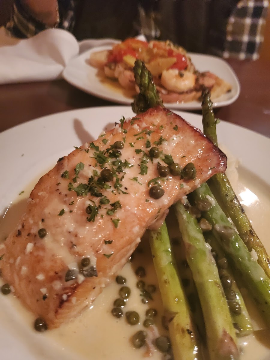 The extensive menu is a testament to the restaurant’s dedication to authentic Italian fare. Don’t miss the Fish & Scallops, pan-seared to perfection and drizzled with a luxurious white wine butter sauce, served alongside rich parmesan herb risotto and a colorful vegetable medley—it's a dish that promises to enchant your palate for just $35.64. If you’re a salmon lover, indulge in the Salmon Piccata ($34.49), where every bite bursts with flavors of lemon and capers, melding together beautifully with creamy mashed potatoes and fresh vegetables.