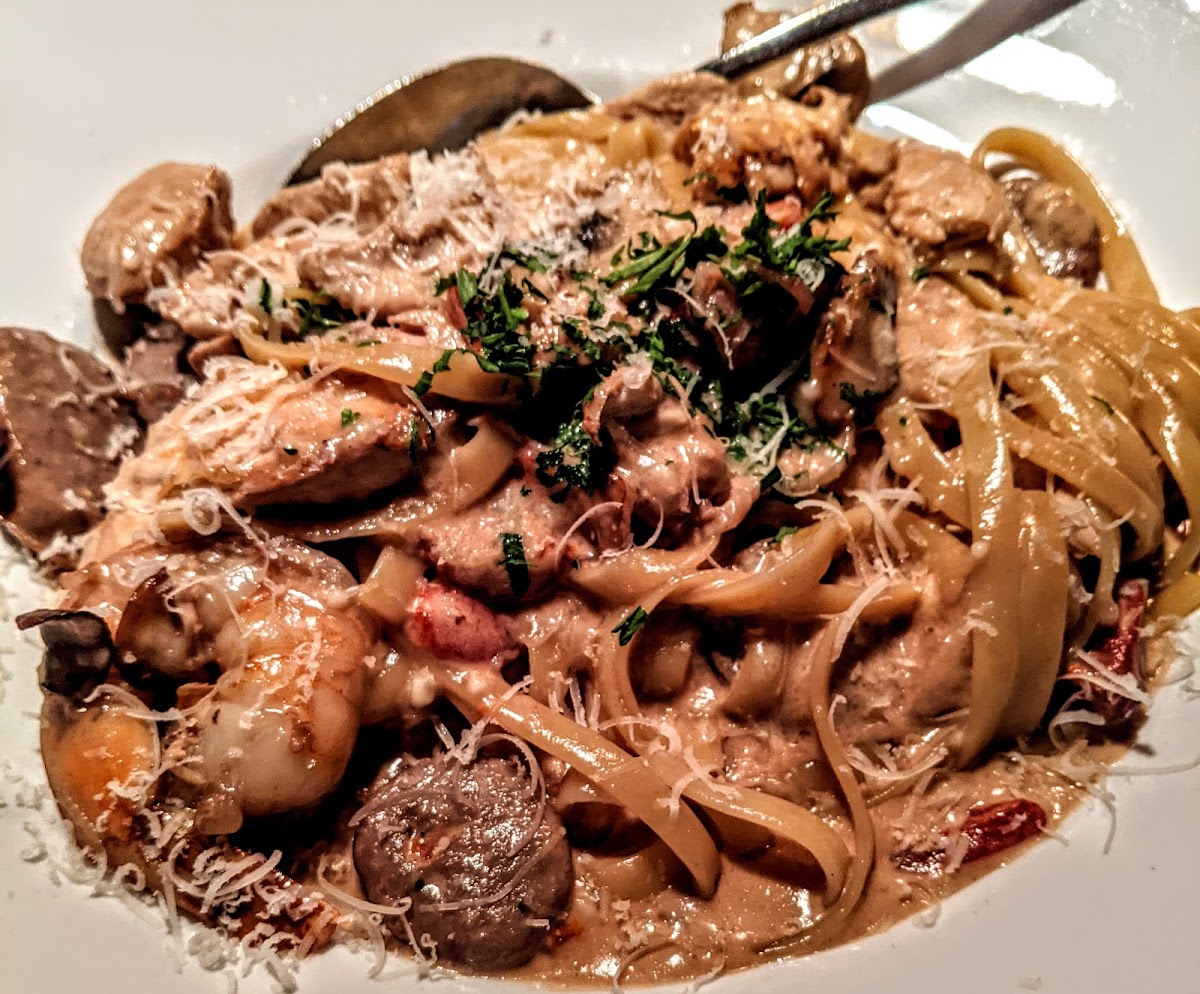 Pasta enthusiasts will revel in the Spaghetti & Meatballs ($24.14), featuring homemade tenderloin meatballs simmered in a thick marinara sauce that feels like a warm hug. For a twist, the Crazy Alfredo combines sautéed chicken, tiger shrimp, and Italian sausage, all enveloped in a rich creamy sauce that will leave you dreaming about it long after the last forkful. Each dish radiates genuine Italian comfort, making it hard to choose just one!